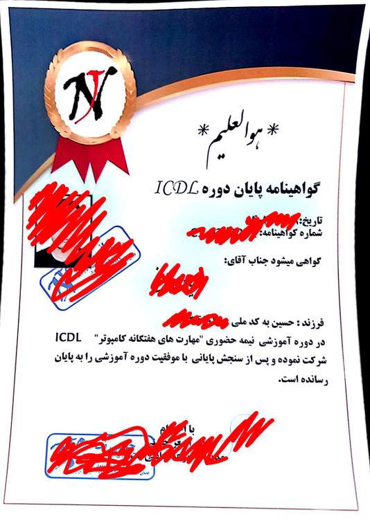 گواهینامه پایان دوره کامپیوتر ICDL